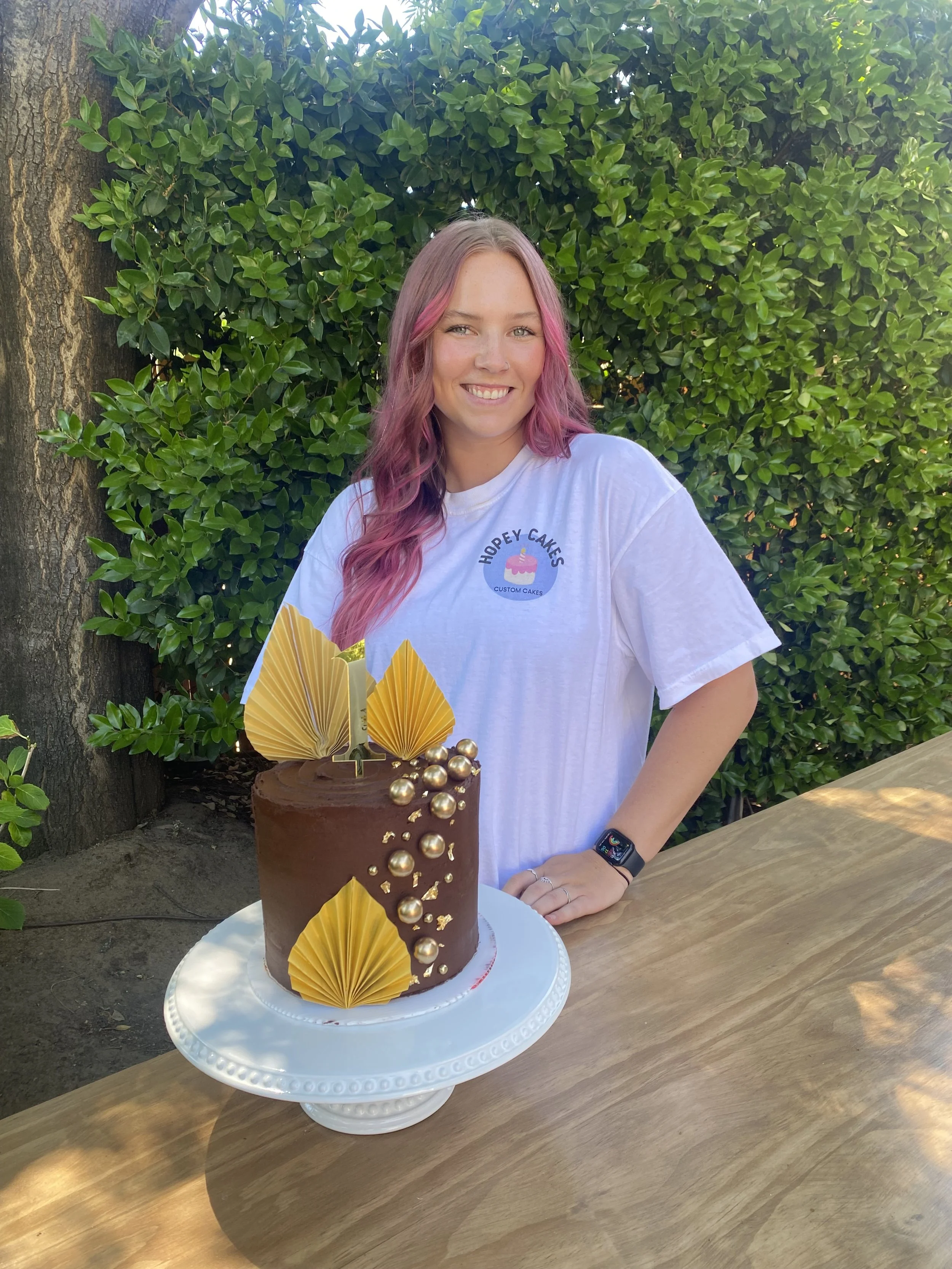 Hi, I’m Hope, the baker, decorator, and sweet tooth behind Hopey Cakes! Baking has been part of my life since childhood, when I spent hours in the kitchen with my mom and grandma. My grandma was also a cake decorator, and even made her sister’s multi-tiered wedding cake, so you could say it runs in the family! As a teenager, I started dabbling in cake decorating to combine my love for sweets with my creative side. For years, I made cakes for friends and family, always pushing myself to try new designs. Eventually, my husband encouraged me to share my creations with more than just family birthdays, and on July 21, 2023, Hopey Cakes was born!
